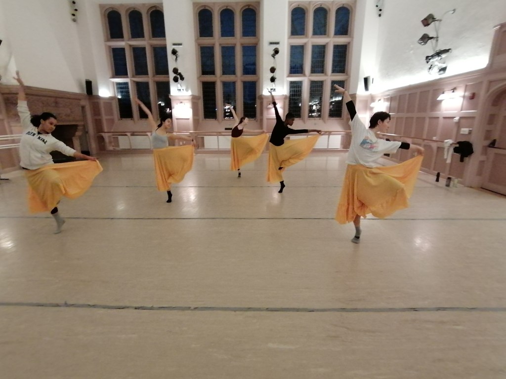 Costumes: The 2 sided skirts with different colors play a major role as they represent the difference in emotion from begin against the ending emotions. (Designed and executed by Lexa Grace)